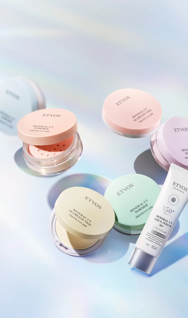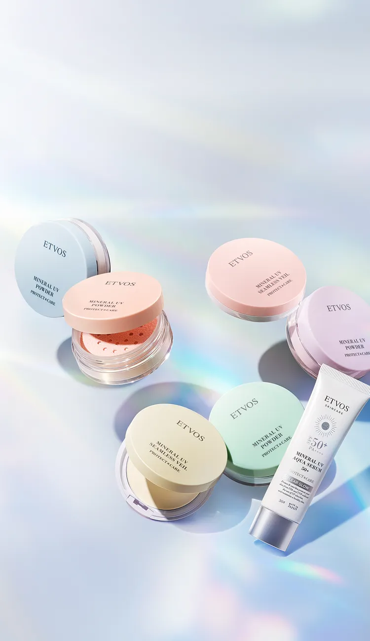環境に配慮したサステナブルな活動の⼀環としてミネラルUVパウダーAZは詰め替え(ピンクベージュ、ペールラベンダーのみ)を、ミネラルUVシームレスベールAZはリフィル(ナチュラルベージュのみ)をご⽤意。