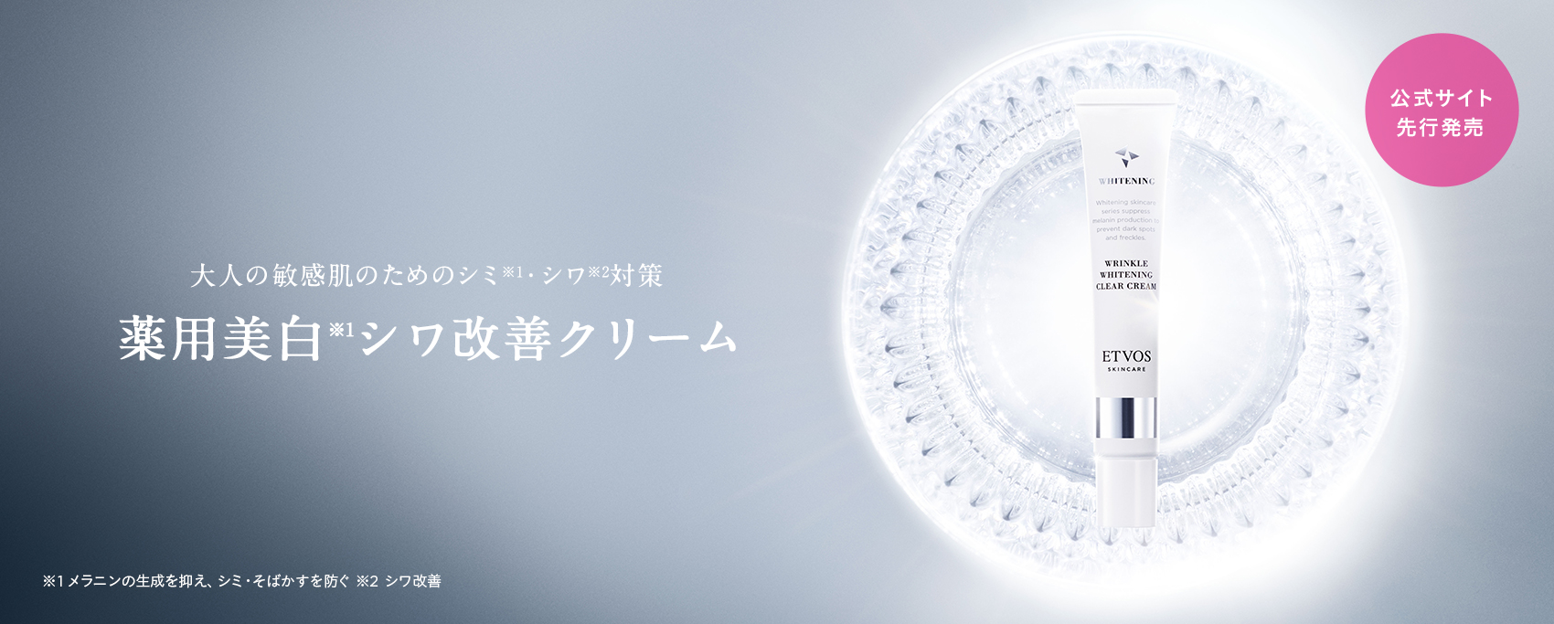※1 年齢に応じたスキンケア ※2 メラニンの生成を抑え、シミ・そばかすを防ぐ ※3 乾燥による