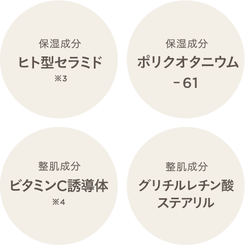 肌構造の変化※2に着目し、土台を整える※1ためのケア成分をたっぷりと配合。