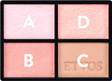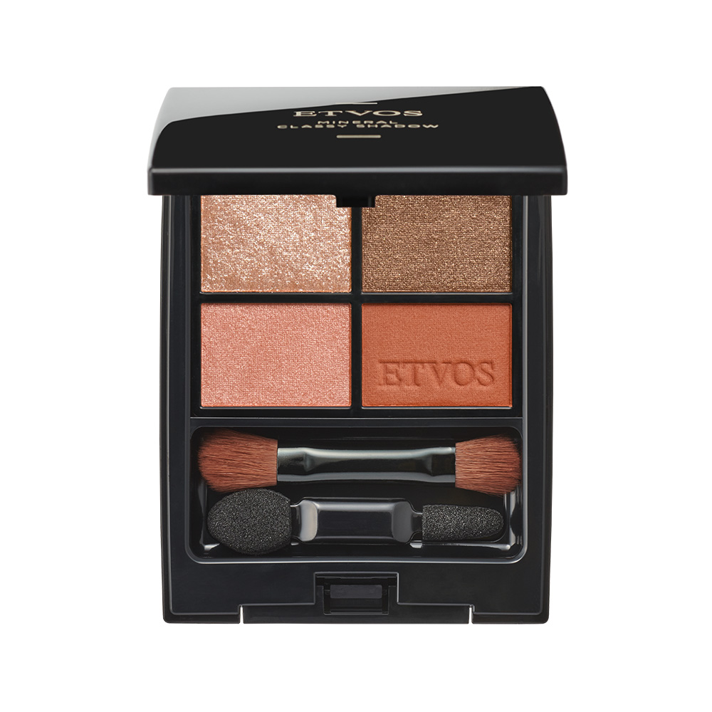 まぶたに高揚感を映し出すようなピーチベージュにブルーパールが無邪気に漂うペールオレンジ、ゴールドパールが溶け込み、透き通る花びらのようなシアーパープル、クリーンなグレイッシュブラウンが響きあい、まなざしに凛とした多幸感を宿します。