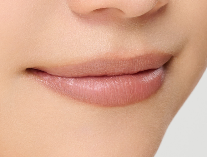 同色系の口紅を塗った上から重ねて、セミマットな質感に。