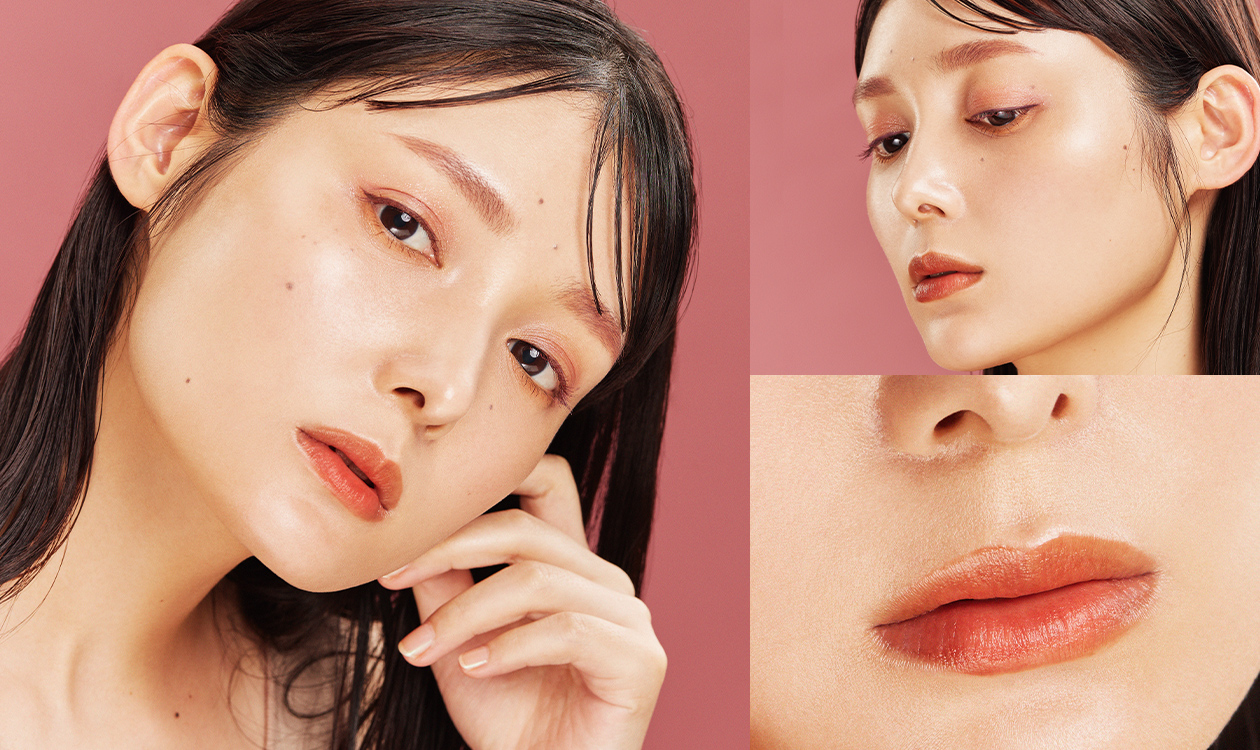 落ち着きのある大人っぽさの中に溶け込むのは、華やかな赤みのニュアンス。万能なベーシックカラーでありながらさりげなく魅力を放つ、やさしさの滲む唇へ。