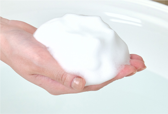 6種類の石けん成分※5と泡立ちサポート成分※6をバランスよく配合し、“もこもこ”とした泡質と“もっちり”と弾力のある濃密泡になるようにこだわりました。