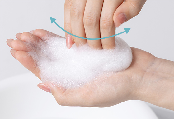 オーガンジーのやわらかな質感が心地よい泡立てネット(別売り) の使用がおすすめ!