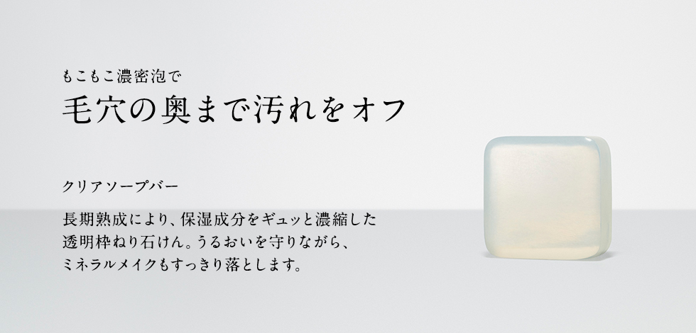 クリアソープバーには3種のヒト型セラミド※2などの保湿成分をたっぷり配合しているため、洗いあがりの肌はつっぱりにくい、うるおう肌に仕上がります。