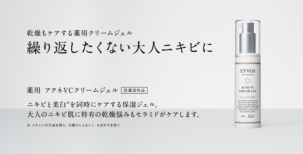 ニキビと美白※1を同時にケアする保湿ジェル。大人にきび肌に特有の乾燥悩みもセラミドがケアします。