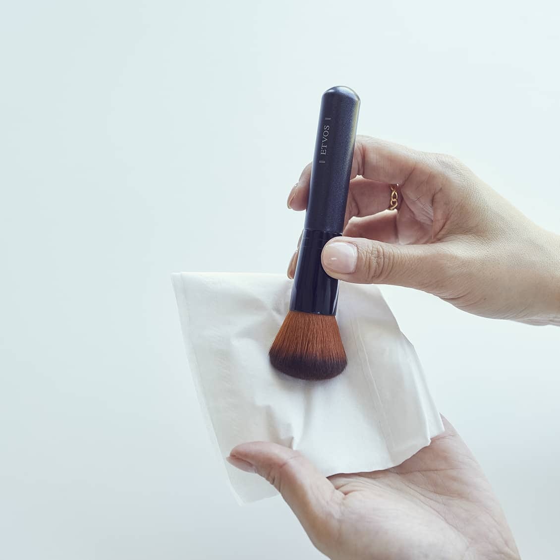 「使ったら、必ずティッシュにくるくるとブラシをあて、表面にある粉を取りましょう。