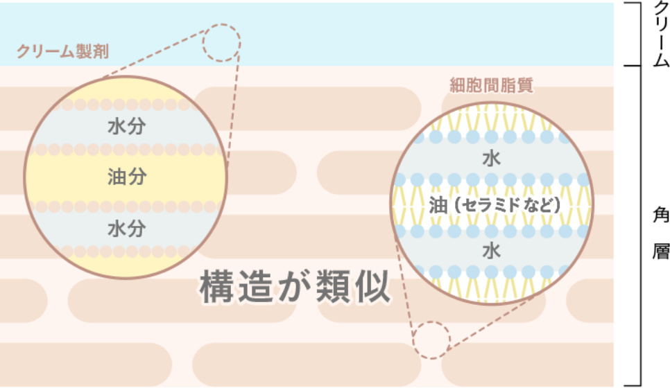 クリームの製剤が肌内部のラメラ構造と類似しているため、肌なじみがよく角層まで素早く浸透。