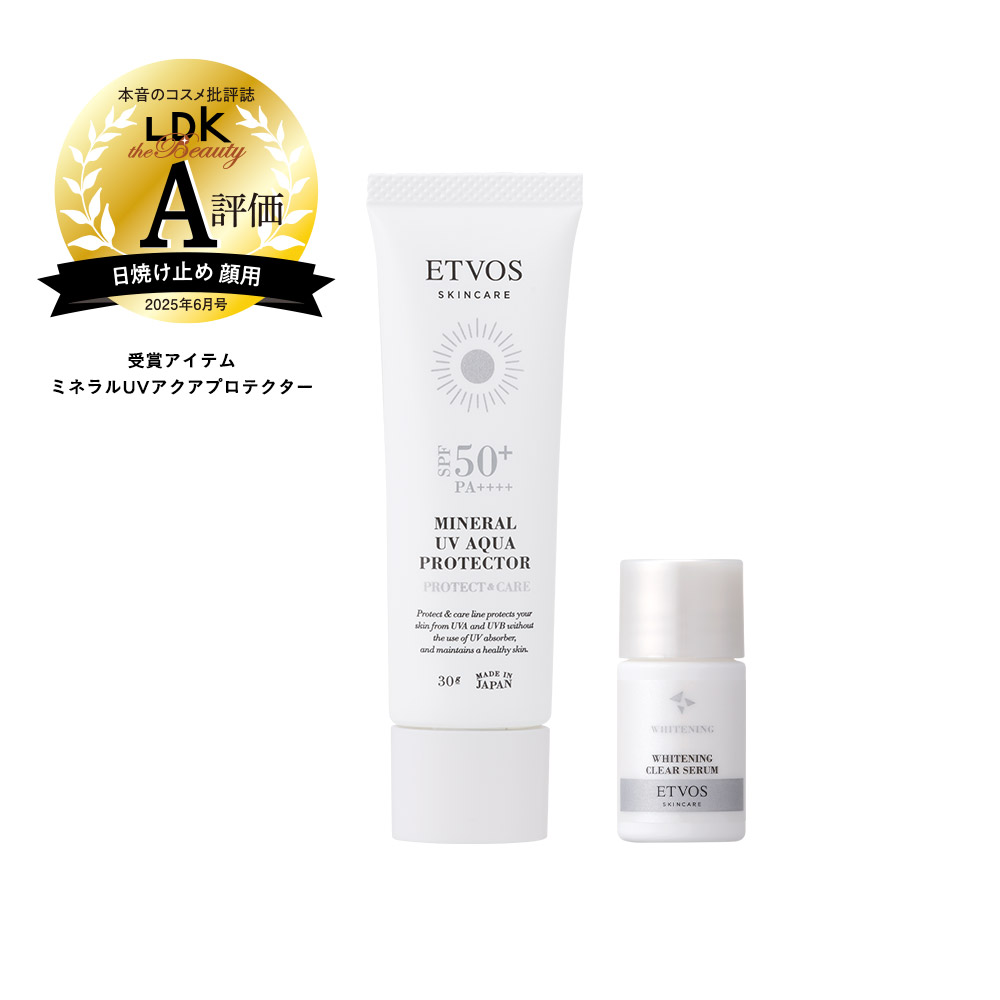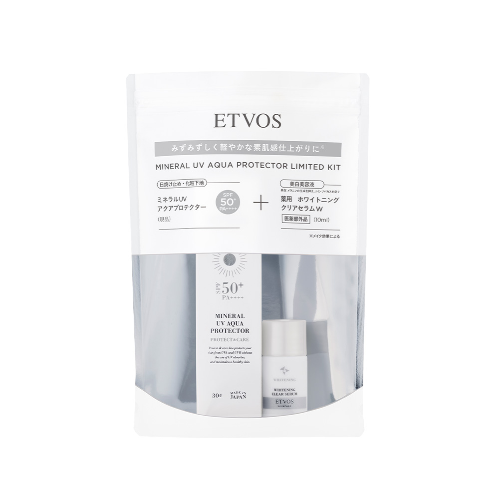 美容液成分※4 72%、うるおい弾ける、最強※1 UV水感美容液の現品に、コスメ賞多数※2受賞の薬用美白※3美容液が試せるミニボトル付きのお得な限定キット。