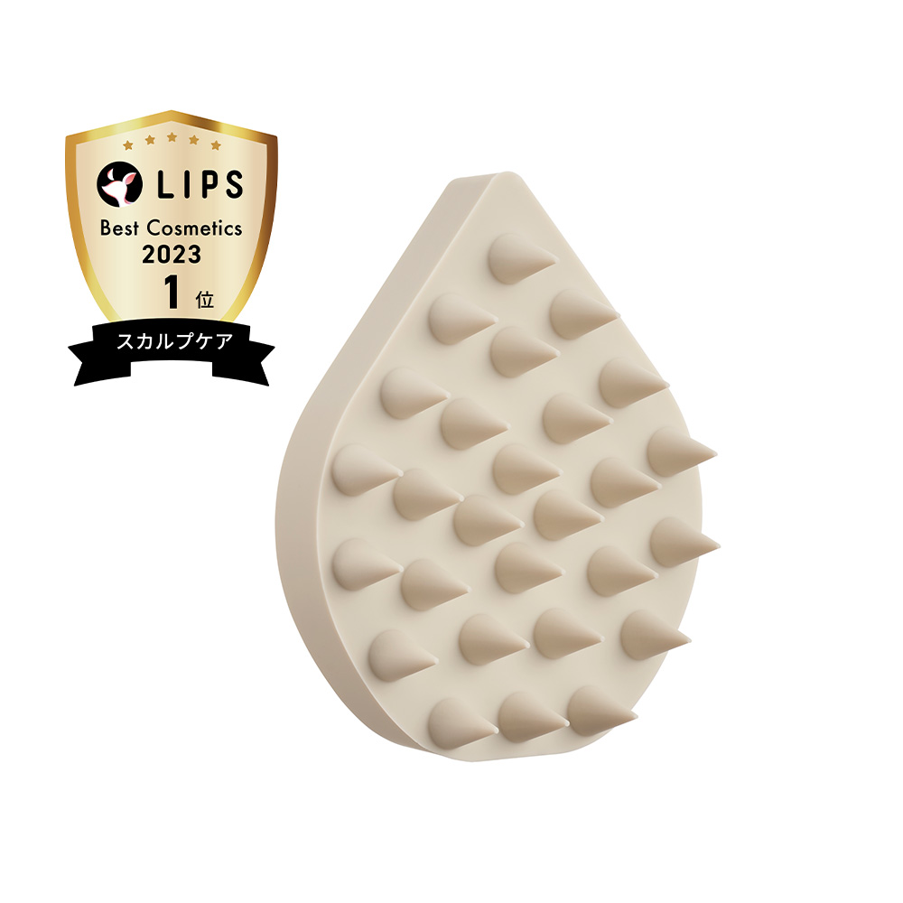 アウトバスでもインバスでも使え、頭皮のツボを心地よく刺激できるマッサージブラシ。